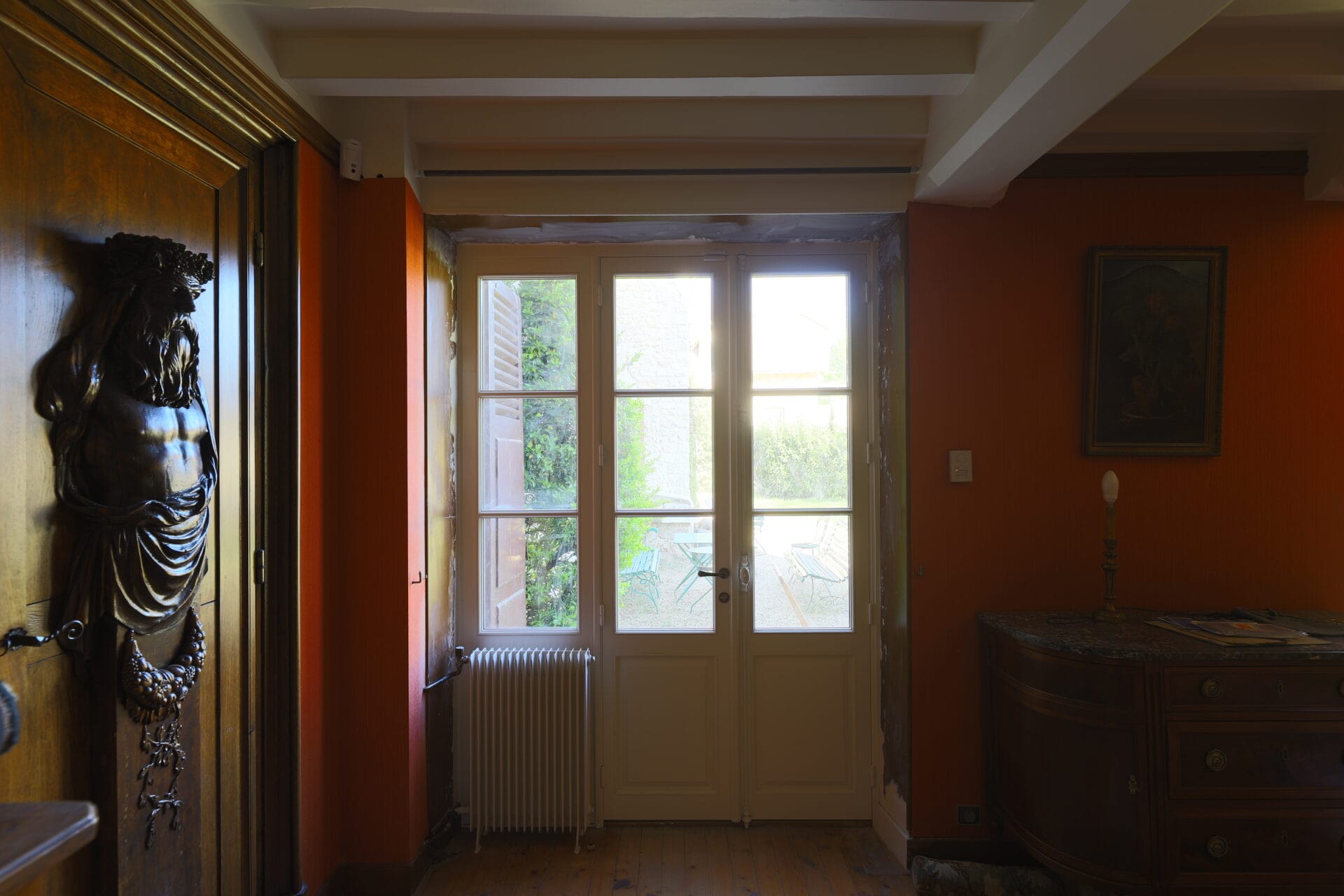 Les menuiseries extérieures étaient à simple vitrage. La demande était de reproduire l'architecture à l'identique en ayant des performances modernes. La difficulté de ce projet résidait dans l'intégration de vitraux, d'avoir une fenêtre à 2 vantaux et mouton et gueule de loup ayant le maximum de clair de vitrage et de largeur 750 mm totale de fabrication ou une porte fenêtre avec une répartition tiercée et permettant l'ouverture sans changer le radiateur. Ce projet est un concentré de difficulté
