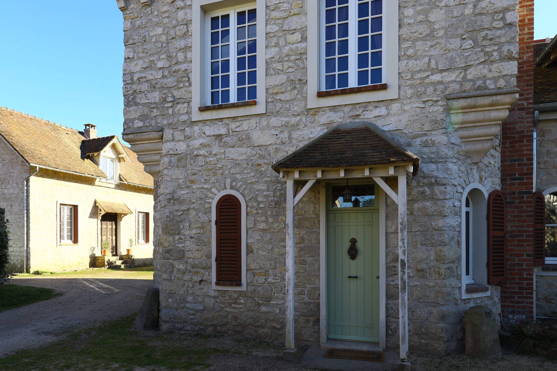 La porte d'entrée a été refaite par rapport à des photos de l'ancienne remplacée il y a quelques années et intégrant la quincaillerie conservée. Cette porte est comme chacune de nos reproductions isolantes de porte ancienne avec 2 joints d'étanchéités et une épaisseur de 65 mm brut pour avoir une performance thermique comparable aux portes d'entrée moderne.