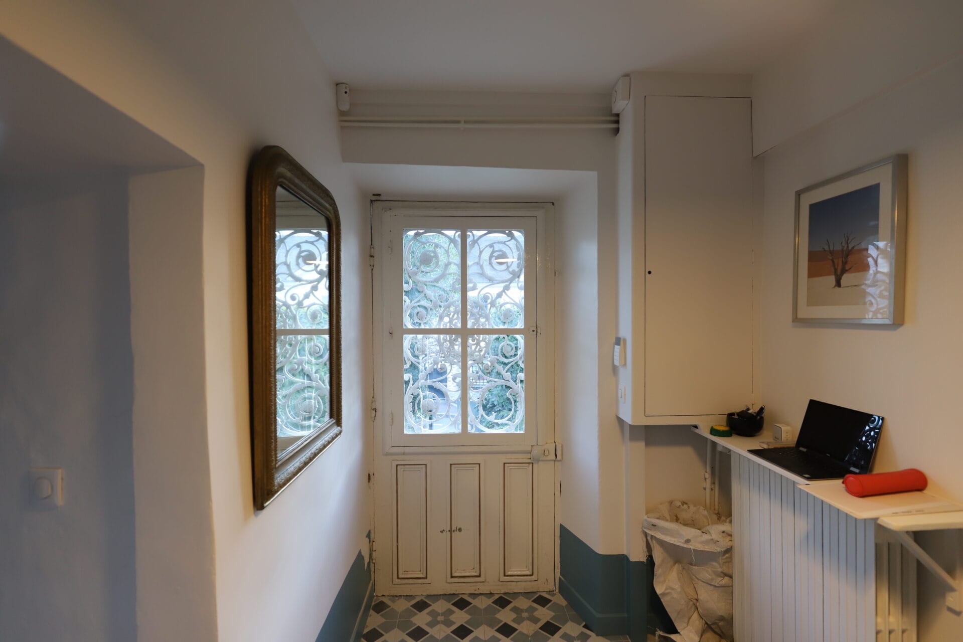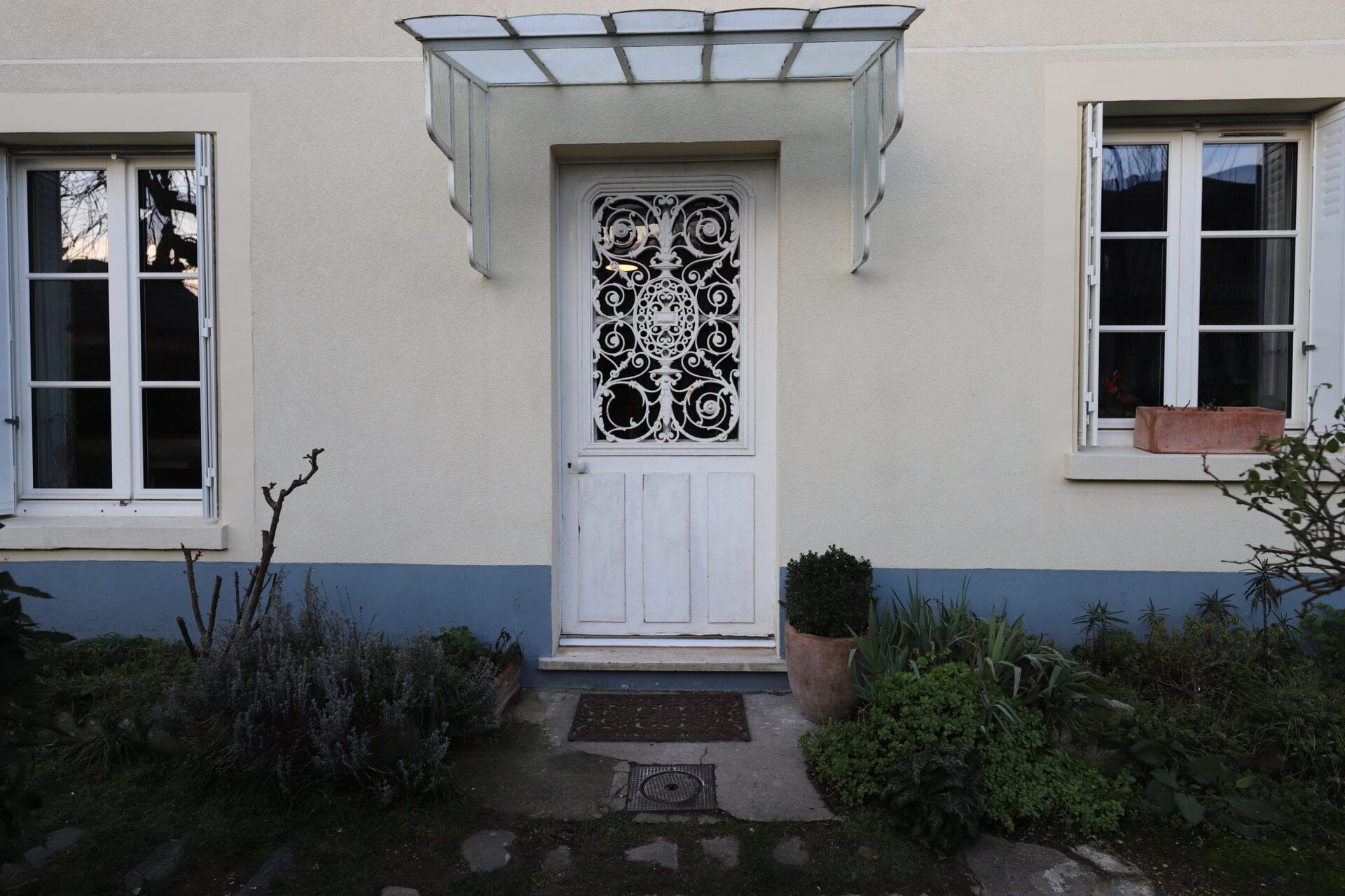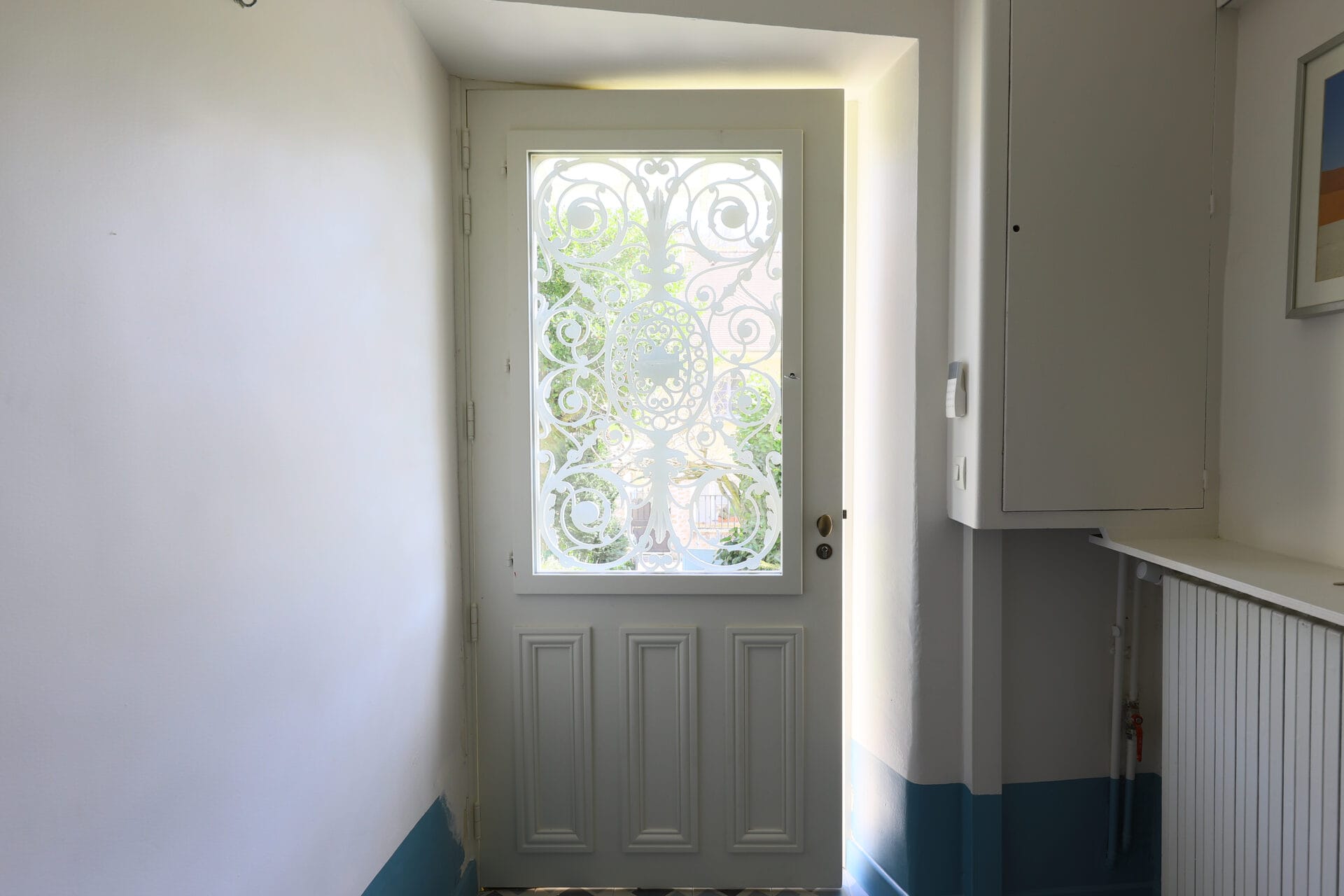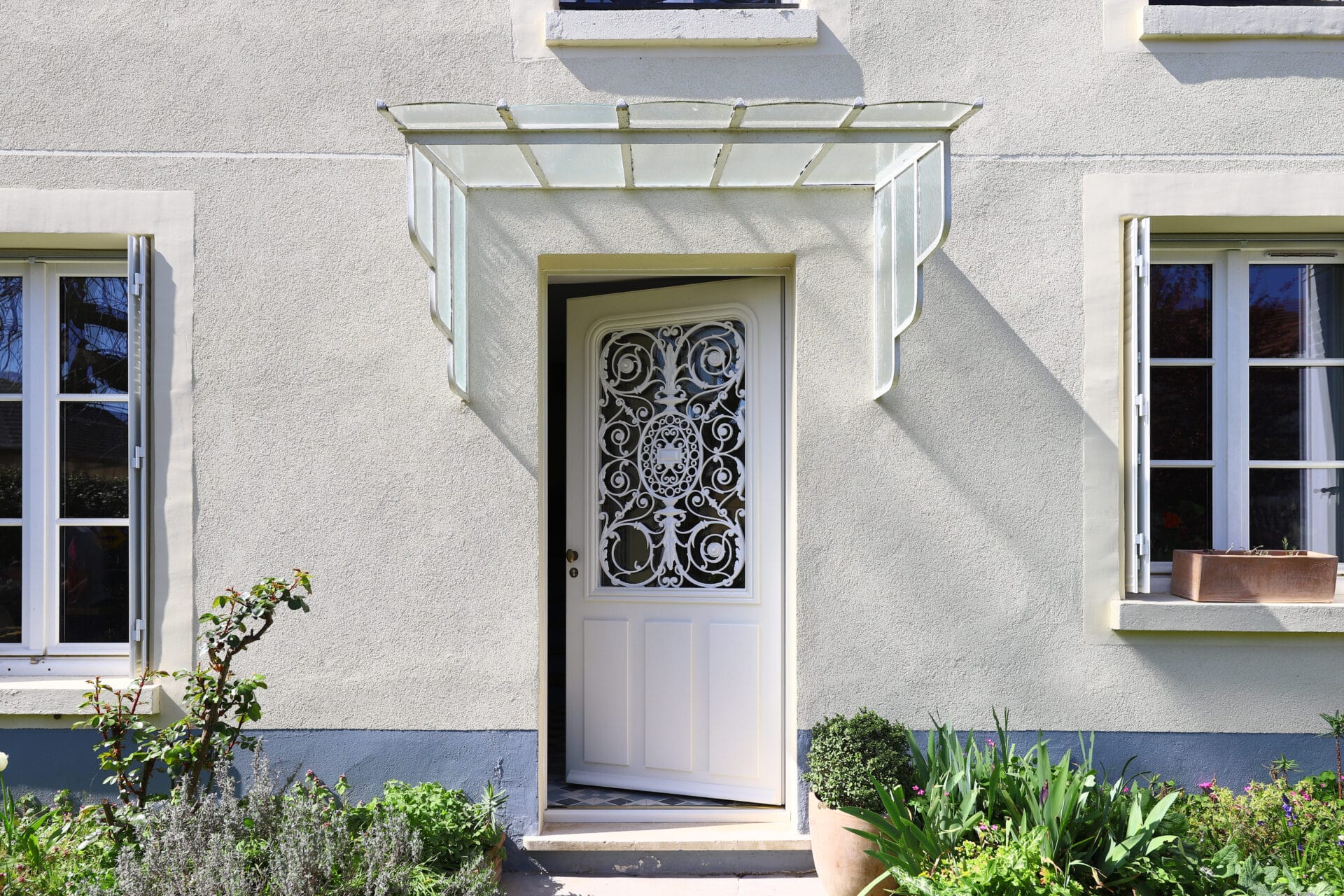 l'objectif était de reproduire, sécuriser et isoler la porte d'entrée. La spécificité de cette porte, le grand cadre encadrant la grille possède des coins de mouchoir en partie haute.